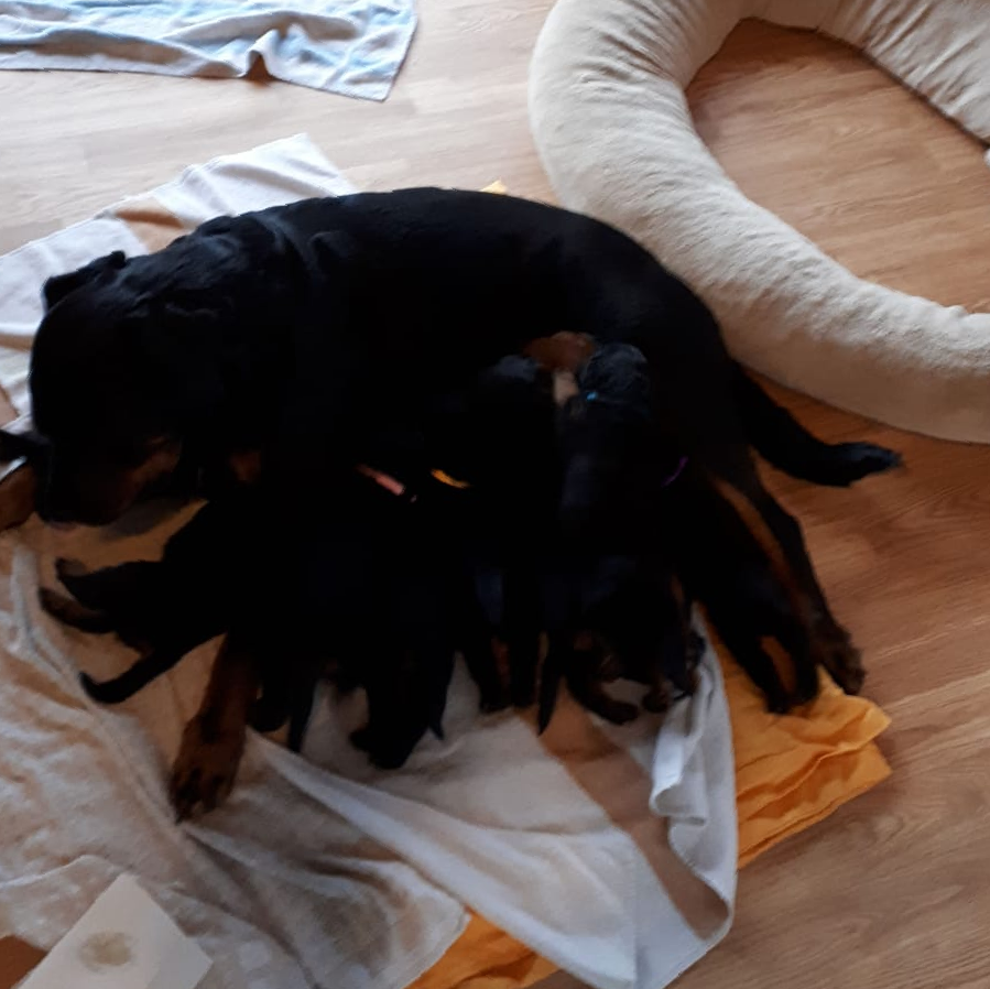 Jetzt heißt es für die kleinen Rottweiler schlafen, trinken und wachsen!!!!